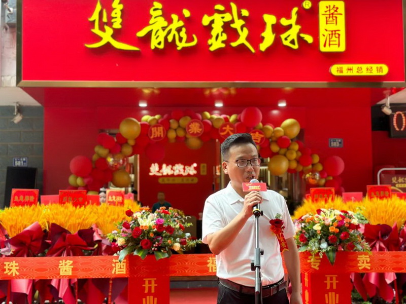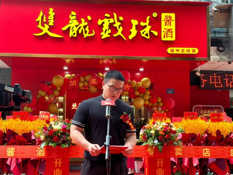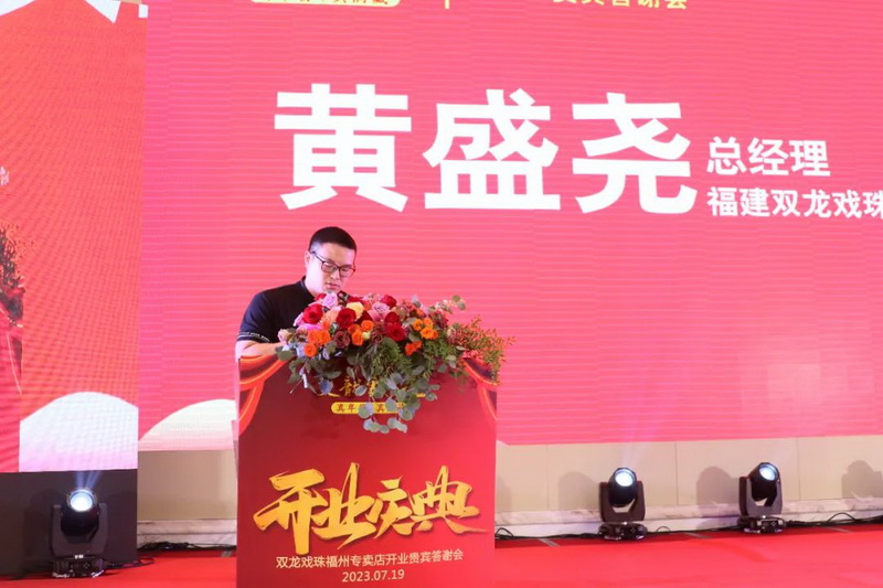 致辭環(huán)節(jié)中,福建雙龍戲珠酒業(yè)有限公司總經(jīng)理黃盛堯?qū)﹄p龍戲珠福州六一路專賣店開業(yè)表示祝賀。他說到,雙龍戲珠酒業(yè)一直以消費者需求為導(dǎo)向,為了更好地服務(wù)于消費者,雙龍戲珠福州六一路專賣店孕育而生。相信在各位嘉賓朋友的鼎力支持下,能讓更多人體驗福建醬酒之美,領(lǐng)略雙龍戲珠釀造之美。