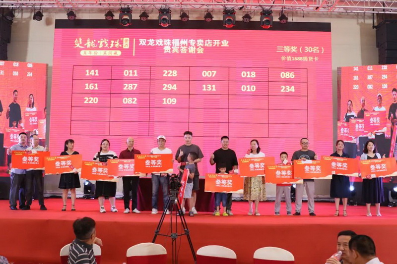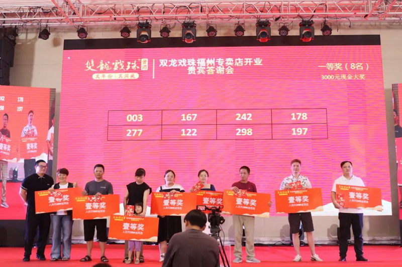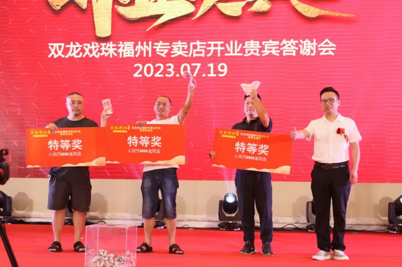 伴隨著雙龍戲珠福州六一路專賣店的盛大開業(yè),答謝晚宴上,福建雙龍戲珠酒業(yè)有限公司總經(jīng)理黃盛堯、福州天福榮貿(mào)易有限公司總經(jīng)理陳建榮進(jìn)行致辭,對現(xiàn)場數(shù)百名來賓的到來表達(dá)了衷心的感謝和熱烈的歡迎。