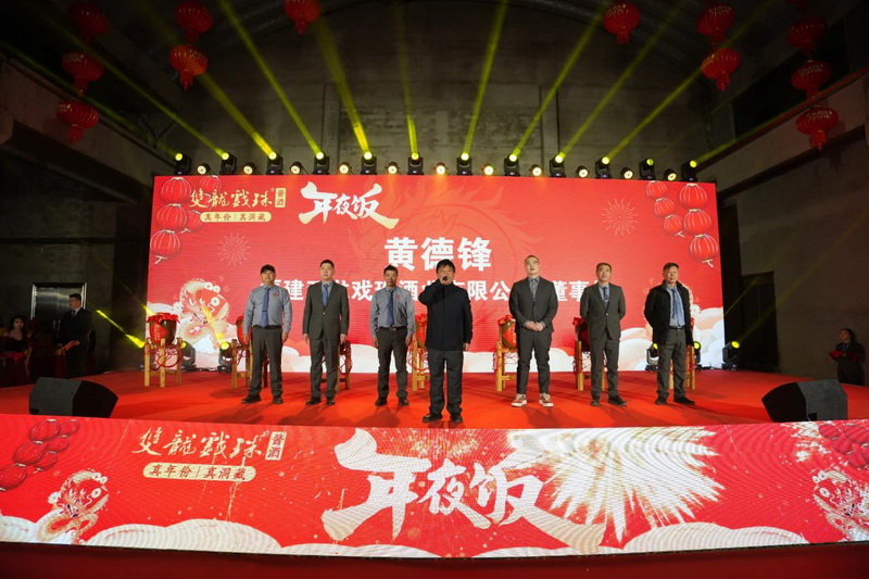 雙龍戲珠酒業(yè)董事長(zhǎng)黃德鋒在致辭中對(duì)全體雙龍人一年來(lái)的辛勤付出表示感謝,并向大家致以新年的美好祝愿。雙龍戲珠酒業(yè)發(fā)展到現(xiàn)在是全體員工一起努力的結(jié)果,今晚在桐源基地舉辦年夜飯活動(dòng),與大家一同見證雙龍戲珠發(fā)展的成果。